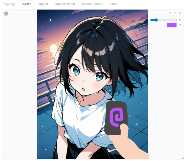 次にimg2imgタブのsketchを使い適当にスマホっぽいものを書きます。